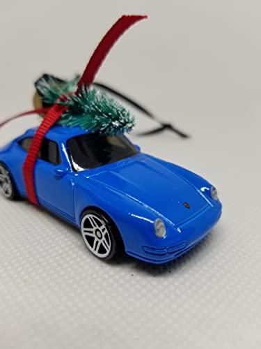 3” Christmas Ornament with Tree for blue Porsche Carrera 911 Owners by Speedtails | Gift Ideas 2021 | Handmade in USA
