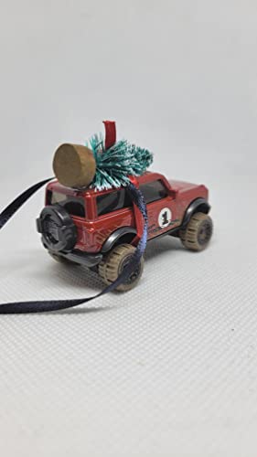 Christmas Ornament with Tree for Ford Bronco Owners by Speedtails | Gift Ideas for Ford Bronco (Red)